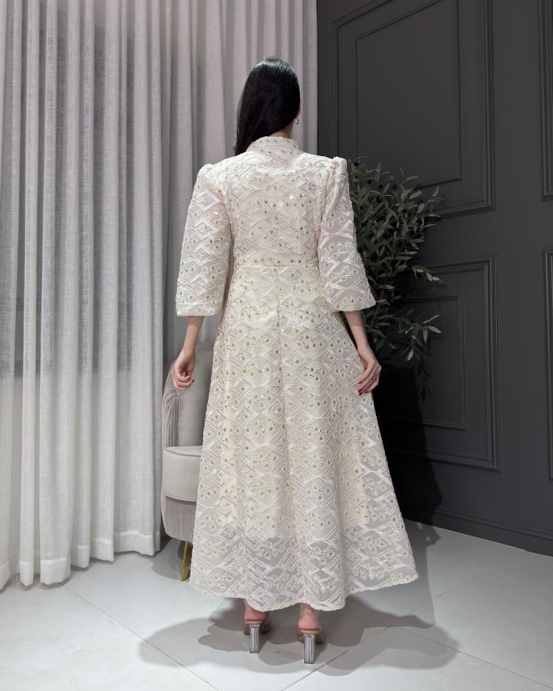 ✔️ الأكمام: متوسطة الطول بقصة واسعة
