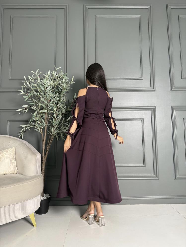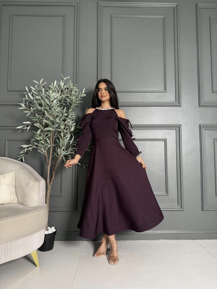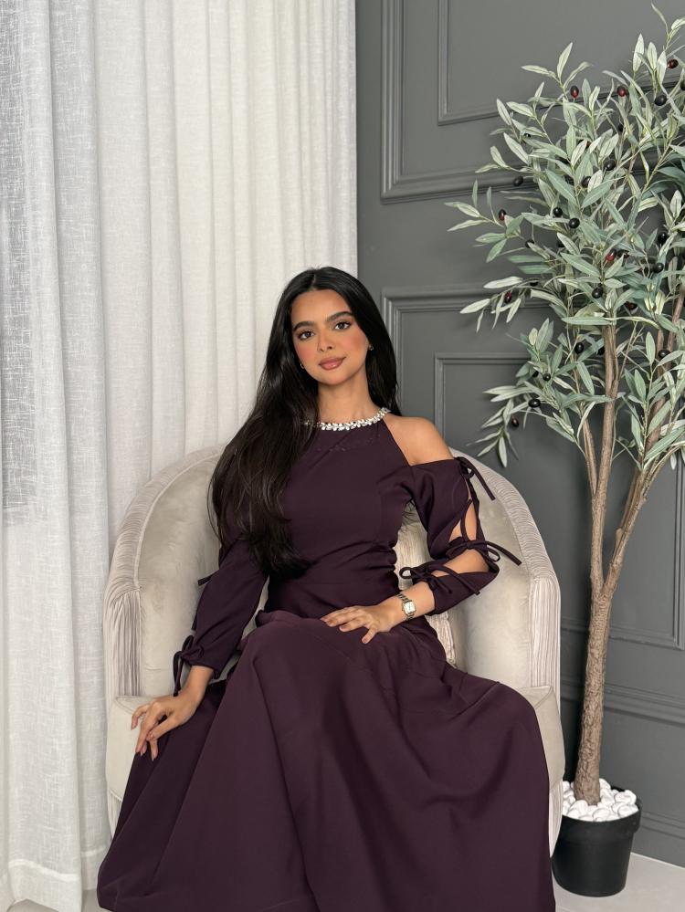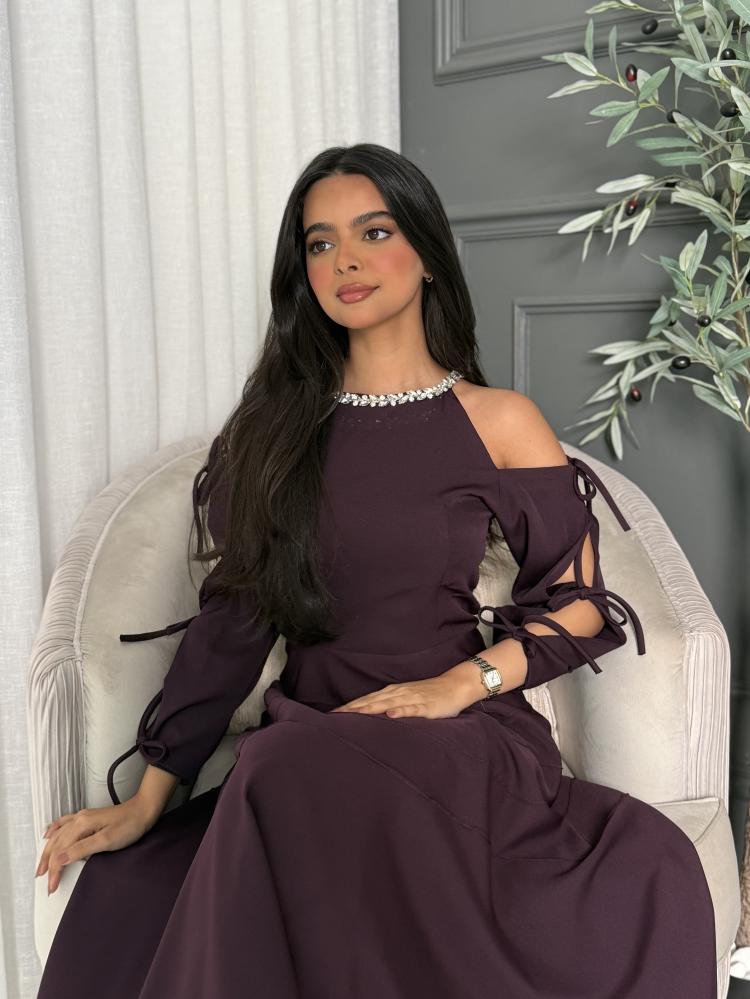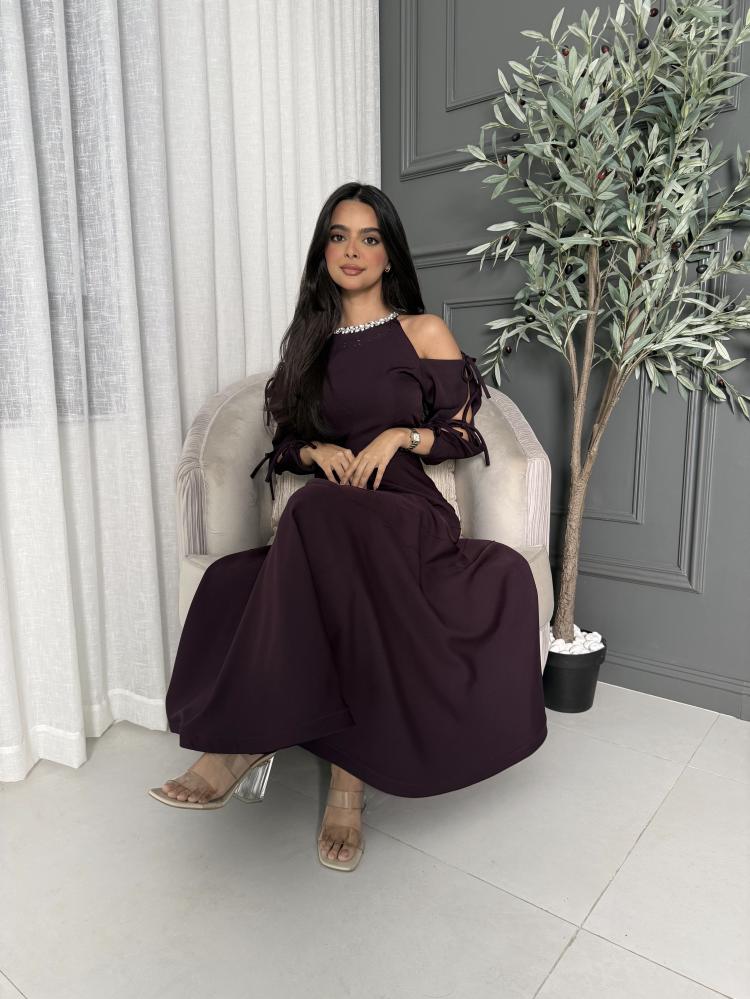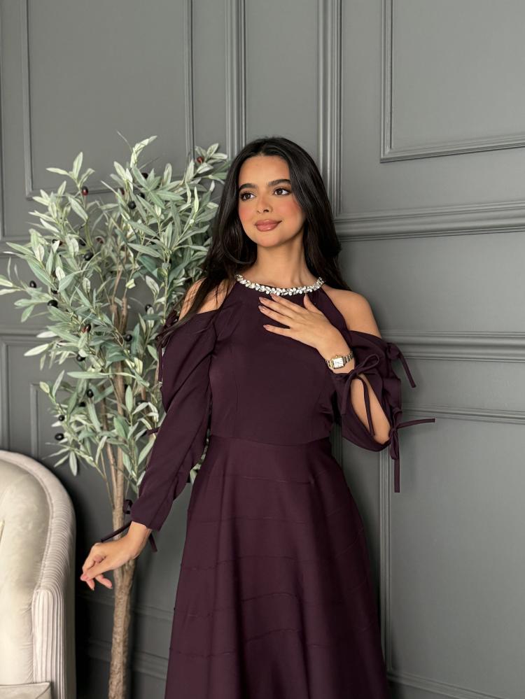 هذا الفستان الأنيق باللون البوردو الغامق يعكس الفخامة والرقي، حيث يتميز بقصة جذابة تدمج بين الكلاسيكية واللمسات العصرية.