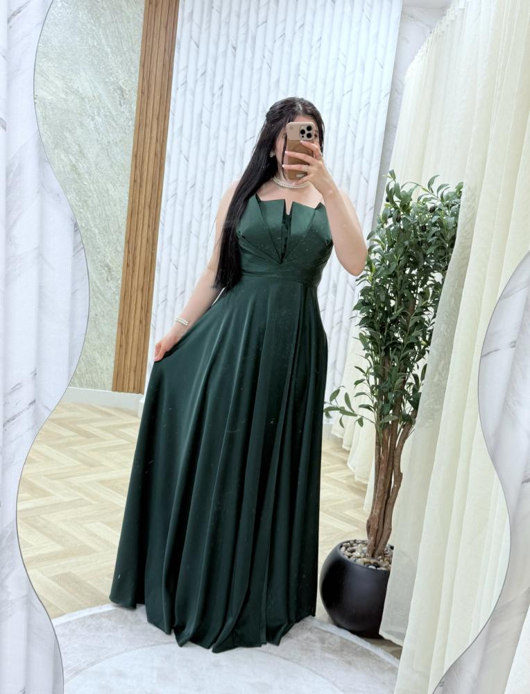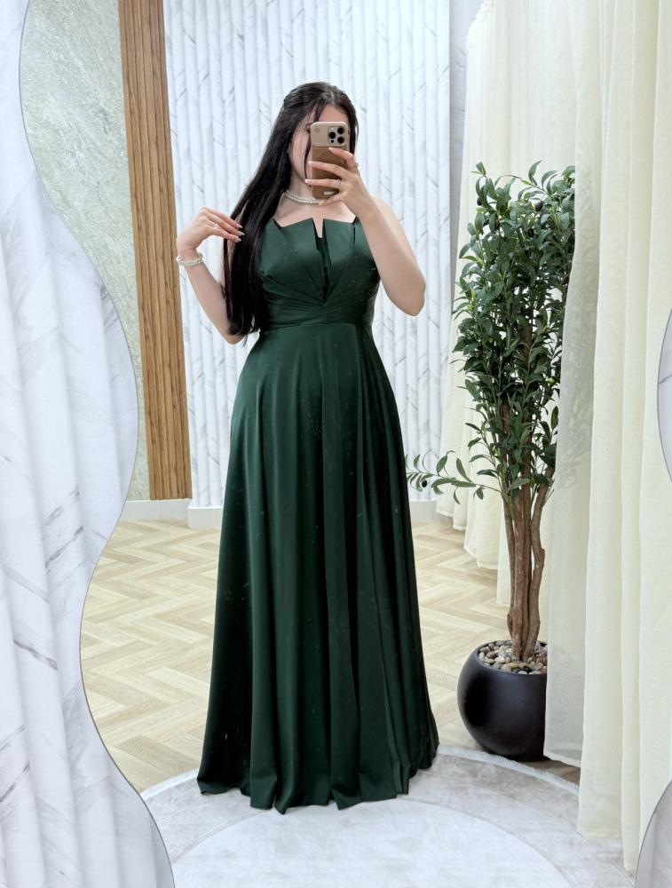 الاسم: فستان زيتي طويل ناعم بتصميم توب أنيق
