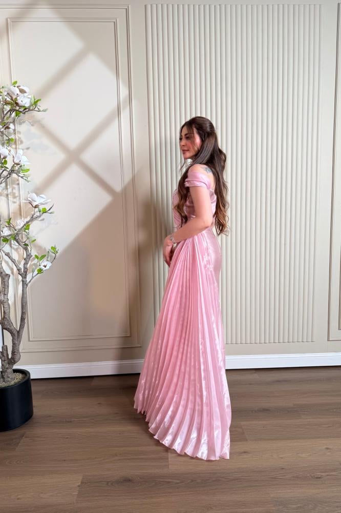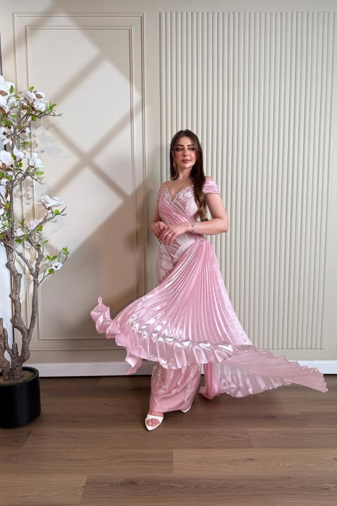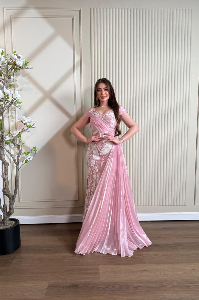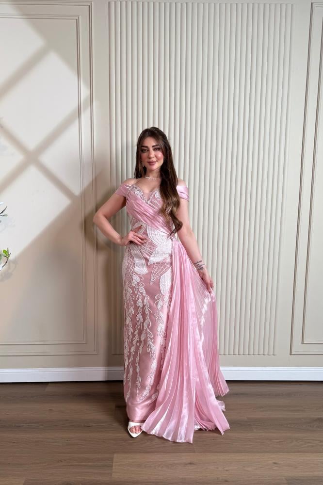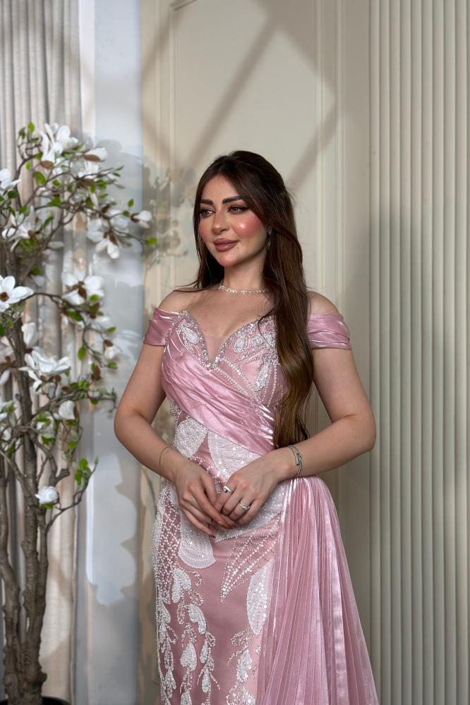 تميّزي بإطلالة ساحرة مع هذا الفستان الوردي المترف من فيونا فاشن، المصمم بقصة انسيابية راقية وتفاصيل مطرزة بدقة . تطريزات بيضاء مستوحاة من الزخارف النباتية تضيف له لمسة ناعمة وراقية، بينما ينسدل القماش الساتان ليوفر حركة جذابة وساحرة..