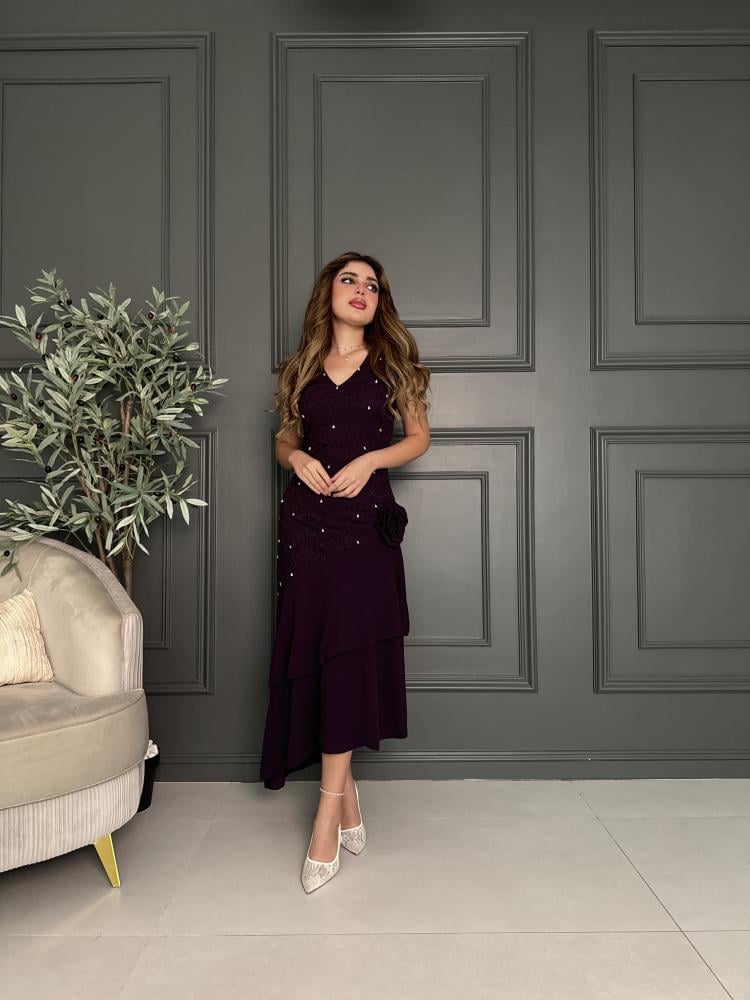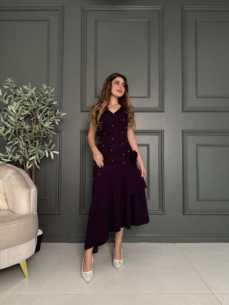 —أبرزي جمالك بإطلالة ناعمة تجمع بين الرقي والأنوثة مع هذا الفستان الميدي البنفسجي من فيونا فاشن.